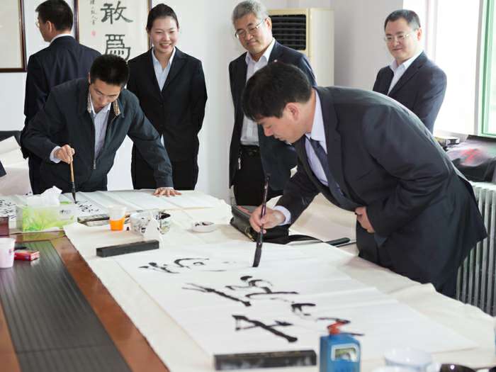 为弘扬传统文化,丰富员工业余生活,5月6日上午,多米体育·多米官方网站-多米体育(中国)举办了首届书画艺术学习交流活动。本次活动邀请了中国书法家协会会员孟云飞博士、中国书法家协会理事张铜彦先生、中国书法家协会编辑出版委员会副主任王荣生教授、人民艺术家协会理事于瑛先生等国内知名书画大师,各位书画大师在活动现场进行了艺术创作表演,挥毫泼墨,交流技艺,为多米体育·多米官方网站-多米体育(中国)留下了数十副墨宝,还对部分员工的书画作品进行了悉心指导。公司员工现场欣赏了书画大师的艺术创作,并聆听了有关书画艺术鉴赏知识的介绍,部分员工还在活动现场进行创作,听取书画大师的讲解示范和点评。