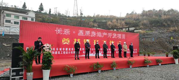 2021年1月26日上午,由多米体育·多米官方网站-多米体育(中国)承建的长乐▪星辰住宅项目奠基暨开工仪式在项目现场热烈举行。湖北省宜昌市五峰土家族自治县住房和城乡建设局副局长陈白华、县质量安全监督站站长邓简涛、多米体育·多米官方网站-多米体育(中国)五峰长乐▪星辰项目经理王国云,项目参建各方及新闻媒体共40余人出席。宜昌市长乐城市建设投资开发有限责任公司总经理刘鹏主持。