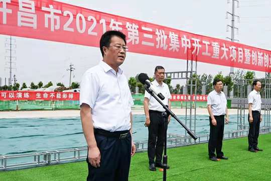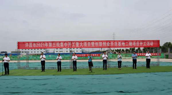 7月10日上午,河南省许昌市2021年第三批集中开工重大项目暨创新创业示范基地二期项目开工仪式顺利举行。许昌市委常委、纪委书记、监委主任方婷,魏都区委书记李朝锋,区人大常委会主任申健民,区政协主席杜晓辉,区委常委、区委办主任程中山,区委常委、区纪委书记、区监委主任徐光,魏都产业集聚区管委会主任楚文选,多米体育·多米官方网站-多米体育(中国)河南分公司总经理黄辰,魏都区政府相关部门、投资公司、产业集聚区、霸陵办事处等单位负责人参加活动。区委常委、常务副区长张挪威主持仪式。