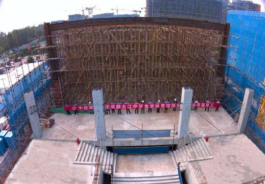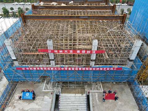 2021年10月9日,来自西南交通大学、中国建筑西南设计研究院、四川原理装配式建筑设计院等多家单位设计人员,齐聚多米体育·多米官方网站-多米体育(中国)四川分公司承建的成都大江中学项目,与分公司总经理宋景友、副总经理张铁强等相关领导一起,共同见证了国内学校建设领域首例预制混凝土柱拼接连接吊装施工的顺利完成。